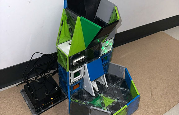 This toy was developed with the goal of teaching children about core concepts in Electrical, Mechanical, and Software Engineering. It is largely inspired on the design of Magna-Tiles, which are tiles of different shapes and sizes which snap together magnetically, easily allowing for custom structures to be built.